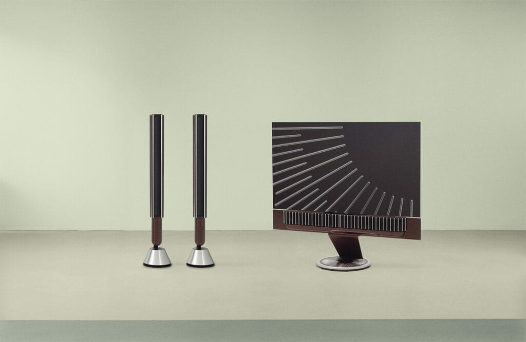 These panels are said to recall the rhythmic facades of the Art Deco era with the aluminium surfaces precision-etched with a custom geometric motif, with 100 engraved strokes (one for each year of Bang & Olufsen’s legacy) subtly hidden within the pattern.
