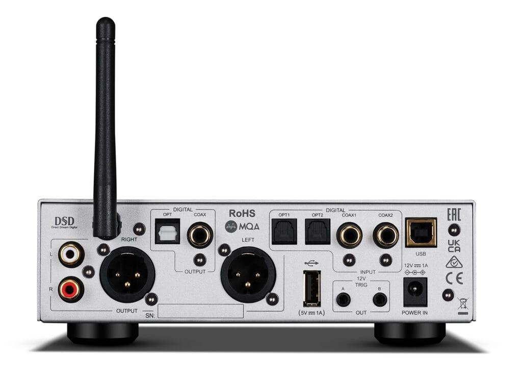Catering for data 32-bit/768kHz (PCM) and DSD 22.5792MHz (DSD512) via USB, it’s also Roon Tested and offers aptX HD Bluetooth connectivity plus coaxial and optical digital in/outputs alongside line-level (RCA), balanced (XLR) and headphone (6.35mm) analogue outputs.