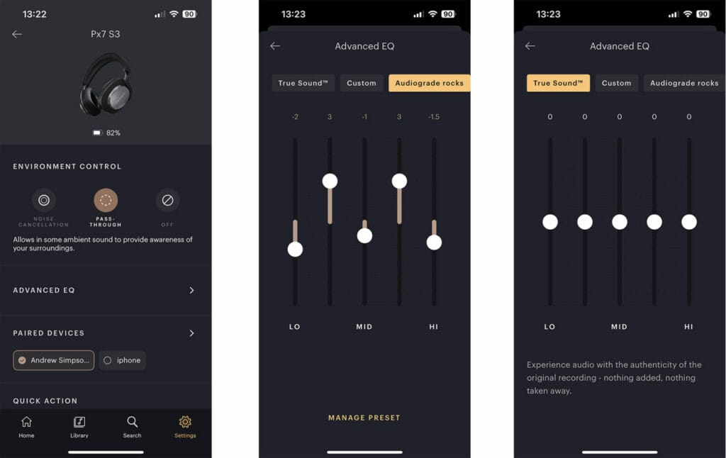 And for users less fussed about constant EQ tweaking, there’s a True Sound option for those wanting their headphones to sound as Bowers & Wilkins intended.