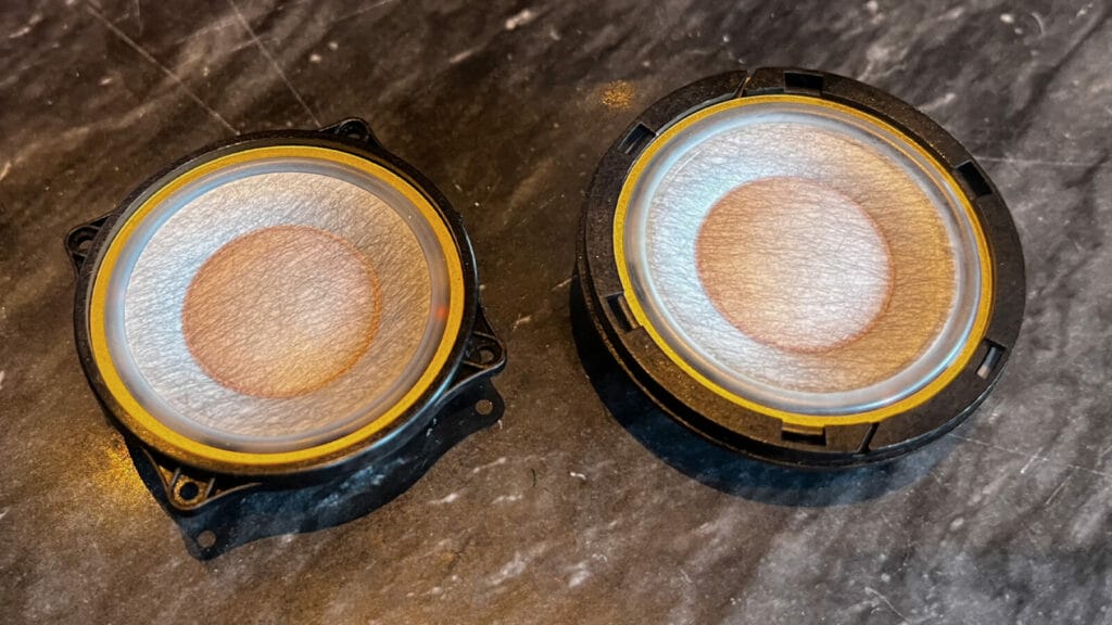 In fact all that’s been carried over from the Px7 S2e is the 40mm biocellulose cone (pictured above) from its full range driver, with the rest of the driver being re-engineered with an improved voice coil, suspension, magnet and motor. But before we get into what else has been internally revamped, the most obvious upgrade is the Px7 S3’s external aesthetic, with the new model being around 10mm slimmer in comparison to its predecessor (55mm vs 45mm for the old to new one by my reckoning).