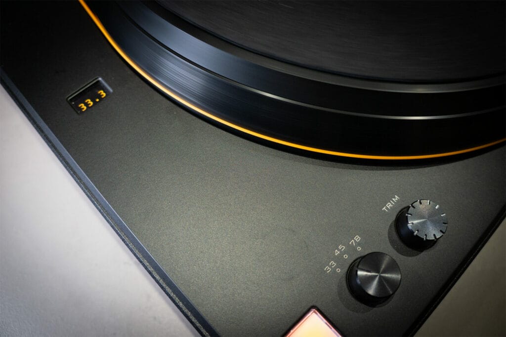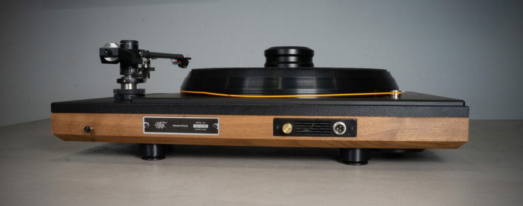 MasterDeck’s controls include power and electronic speed select for 33/45/78rpm, plus a trim pot should it be needed