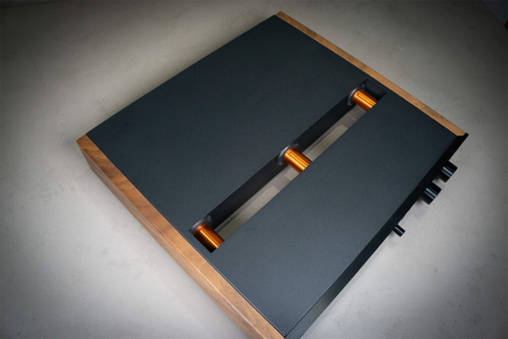 Aerial view of the MasterPhono reveals its split chassis, keeping signal and power circuits separated