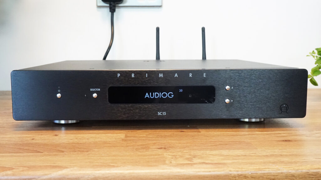 Also available in titanium silver finish, note Primare’s trademark extruded front panel. The included remote in shot for scale highlights the SC15’s reduced dimensions at 350x330mm (WxD)
