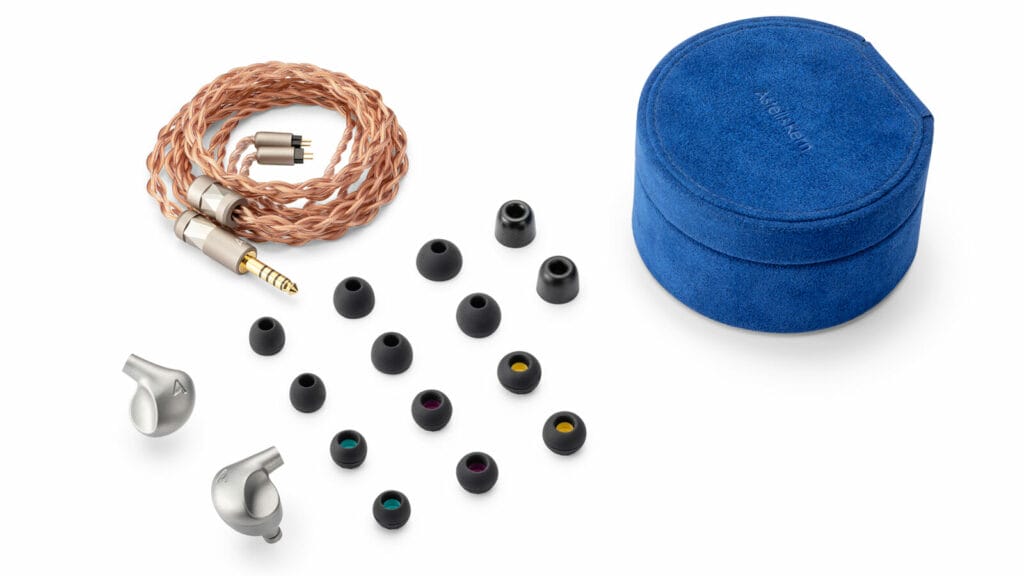 Other features include two pin 4mm connectors, silver-coated copper cables, three pairs of Baroque ear tips (S/M/L), one pair of foam tips, three pairs of AET07 ear tips (S/M/L) and an alcantara carrying case.